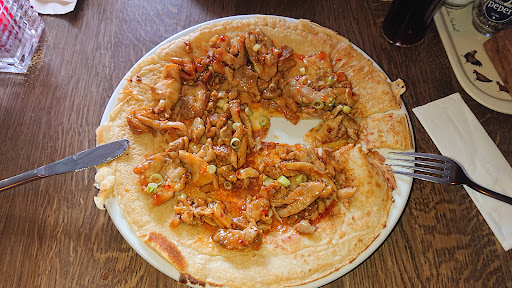 Zelf had ik de pannenkoek Texax dat is spareribvlees met piri piri saus en die was echt lekker.