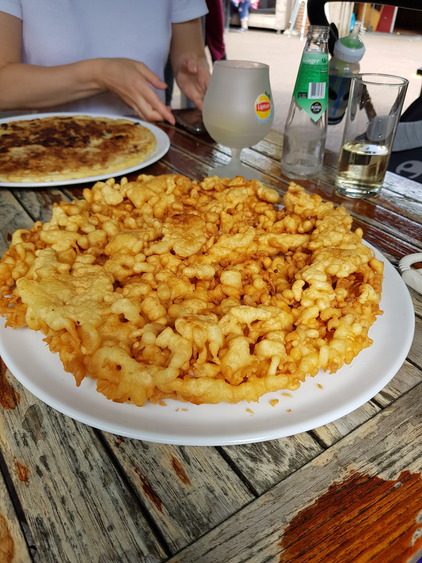 Nadat we 20 minuten hadden gewacht kwam er een vriendelijke jongen vragen wat we wilden bestellen. Het had eerder gekund, maar het personeel vindt het ook leuk om geintjes met elkaar te maken en met de rug naar het terras met elkaar te kletsen.