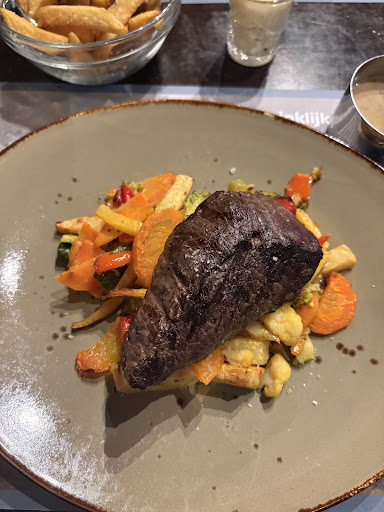Read moreБыл в субботний вечер с подругой! Месяц обсуждали визит в этот ресторан! Опишу все по пунктам! выбрали мясной набор на гриле! 800 грамм мяса за 85 евро! Обычная цена для такого набора если это было бы классно то я бы не расстроился! 1)На доске половина курицы поджаренной в обычных специях с турецкого магазина! Неплохо но это обычная курица! 2) Кусок говяжьего стейка реально не супер! Я бы сказал слегка недожаренного! Но не критично, я такое ем! 3) небольшой кусочек лосося копченый разогретый! Это единственное было вкуссно 4) немножко гуляша из неизвестной дичи! Думаю кабана! Протушенного в 3 килограммах мускатного ореха! 5) 2 молодых морквины и капуста со шпинатом и гора рукколы! Чесно ничего хорошего 6) соус с сумасшедшим количеством перетертого острого перца горошком! К этому всему подается обычная порция картошки фри подаренной очень давно, высохшей и подогретой! На самом деле много расписывал все это выглядит очень скудно! За каждый стол соседний был подан набор из 4 кусочков обычного свеже разогретого багета с маслом и укропом! Нам это подали только после того как мы попросили и за это отдельно взяли деньги! По поводу сервиса! Я все опишу просто одной ситуацией! Когда мы выходили 4 стоящие у барной стойки молодые девушки даже не сказали нам до свиданья! Они стояли возможно под впечатлением от мастерства повара! Мы посидели 2 человека заказали это мясо, две бутылочки воды без газа (заказывали с газом!) и нам посчитали хлеб! За это все мы заплатили 100 евро и 60 центов! Стандартно мы платим в ресторане с звездой мишлена 100 евро это с 2 бокалами хорошего вина! Не рекомендую! Территория на самом деле маленькая! Интерьер неплохой! Но он не спасает провал во всем...