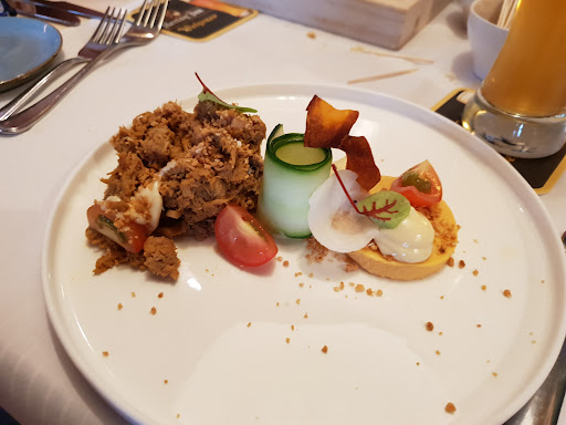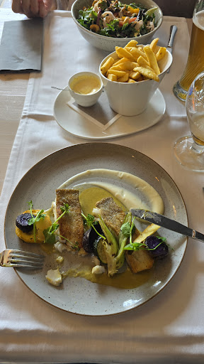 Het interieur is erg mooi en ik had de indruk dat waar je ook komt te zitten, dat je altijd een leuke plek hebt. We waren er gaan eten met de actie van AH dat het 2e 3-gangenmenu gratis was en we werden daardoor totaal niet anders behandeld en we konden gewoon a la carte kiezen. We hebben geen 1 keer iemand hoeven roepen aan onze tafel, want het erg vriendelijke personeel kwam zelf al op de juiste momenten naar onze tafel en ook zeker niet te vaak. De borden waren prachtig opgemaakt, het eten heerlijk en niet standaard. De hoeveelheid was ook perfect. Niet te weinig wat je wel vaker kan hebben in een restaurant in een hoger segment, maar ook niet dat je ontploft van je tafel gaat.