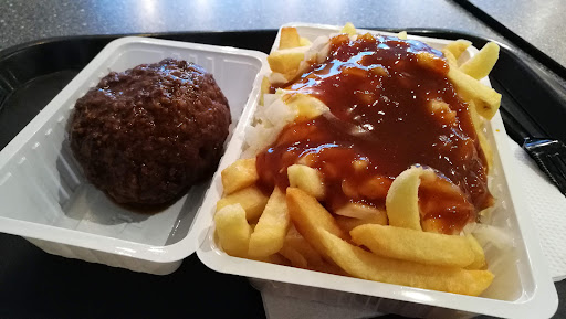 Busy snackbar. Personnel could be a bit friendlier. The fries were good and so we the snacks. On busy hours it is better to call your order in via telephone instead of waiting on the establishment. They do have seating, but I would not want to eat there... All the surrounding shops were boarded up, so I do not expect they will remain...