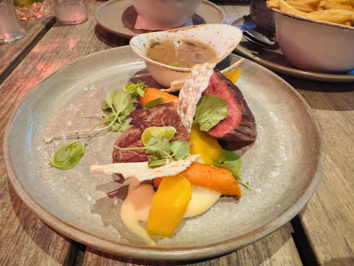 Maar, de laatste tijd is het wat minder met de service als het heel druk is. Het kan dan echt heel erg lang duren. De laatste keer kreeg ik mijn hoofdgerecht maar niet terwijl de rest het al bijna op had. We waren toen twee uur binnen en de tijd begon te dringen dus heb af moeten zien van mijn hoofdgerecht en desserts. We hebben wel een prima voorgerecht gekregen, al moesten we daar ook heel lang op wachten. Het is echt een heel fijn restaurant waar veel mogelijk is, binnen twee restaurants, een groot buitenterras en nog ruimte voor bruiloften maar dit zorgt er ook voor dat het dan misschien te druk is voor de bar, keuken en personeel. Toen ik ging afrekenen stond mijn hoofdgerecht ook nog gewoon op de rekening. Toen ik aangaf dat ik die niet had gekregen hoefde ik die niet te betalen. De laatste tijd merken we vaker dat dit soort kleine foutjes gebeuren. Mijn man stootte zijn hoofd aan een gewei dat onhandig laag boven de tafel hangt liep daarbij een kleine snee in zijn bol op, geen drama maar het bloed liep over zijn voorhoofd. Serieus geen drama maar vind het jammer dat je het dan moet doen met "oh vervelend, hij hangt inderdaad wat onhandig, hier heeft u een pleister". Al met al blijft het echt een heerlijke plek om te eten. Zeker op het overdekte en evt verwarmde buitenterras met de mooie aangelegde tuin en speeltuin eromheen is het goed toeven,zowel s'middags voor een bakkie met een gebakkie of een lekkere lunch als s'avonds met een diner of een lekker biertje/borreltje.