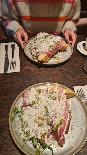 Read moreHeerlijk geluncht,grote garderobe apart van het restaurant met kledinghangers, wel meteen bij de ingang en daarna weer een deur links naar het restaurant open ramen dus zicht van buiten op alle jassen en niet vanuit het restaurant, dus laat geen waardevolle spullen achter bij of in je jas. Bij terugkomst zat er ook iets wat plakt op mijn jas?, misschien kinderhandjes of wat geknoeid , dit kan omdat de jassen ook laag hangen. cappuccino was goed van smaak. Thee wat gereserveerd wordt is Twistea, waarbij eigen keuze uit box, vind zelf de smaak champaigne all day erg lekker, we hadden de focaccia met rundercarpaccio en groene pesto, ruim voldoende, ik was voldaan na dit broodje, Het is noodzakelijk om te reserveren zeker in het weekend . Ik vond onze 2 persoons tafeltje niet prettig, was teveel in een doorgang, te open en dat ligt natuurlijk meer aan mij dan aan hun, mijn voorkeur gaat uit naar een tafel waar bij je alleen de voorzijde kunt passeren en niet ook nog van achteren, mijn rug moet beschernt zijn(angststoornis), Dus gelukkig een andere tafeltje gekregen waarbij dit van toepassing was. Kom zeker terug en dan geef ik bij reservering wel alvast mijn voorkeur qua tafel aan zodat het voor beide partijen wat minder ongemakkelijk is. Want dat voelde voor mij wel even zo. Erg mooie landelijke omgeving net buiten het...