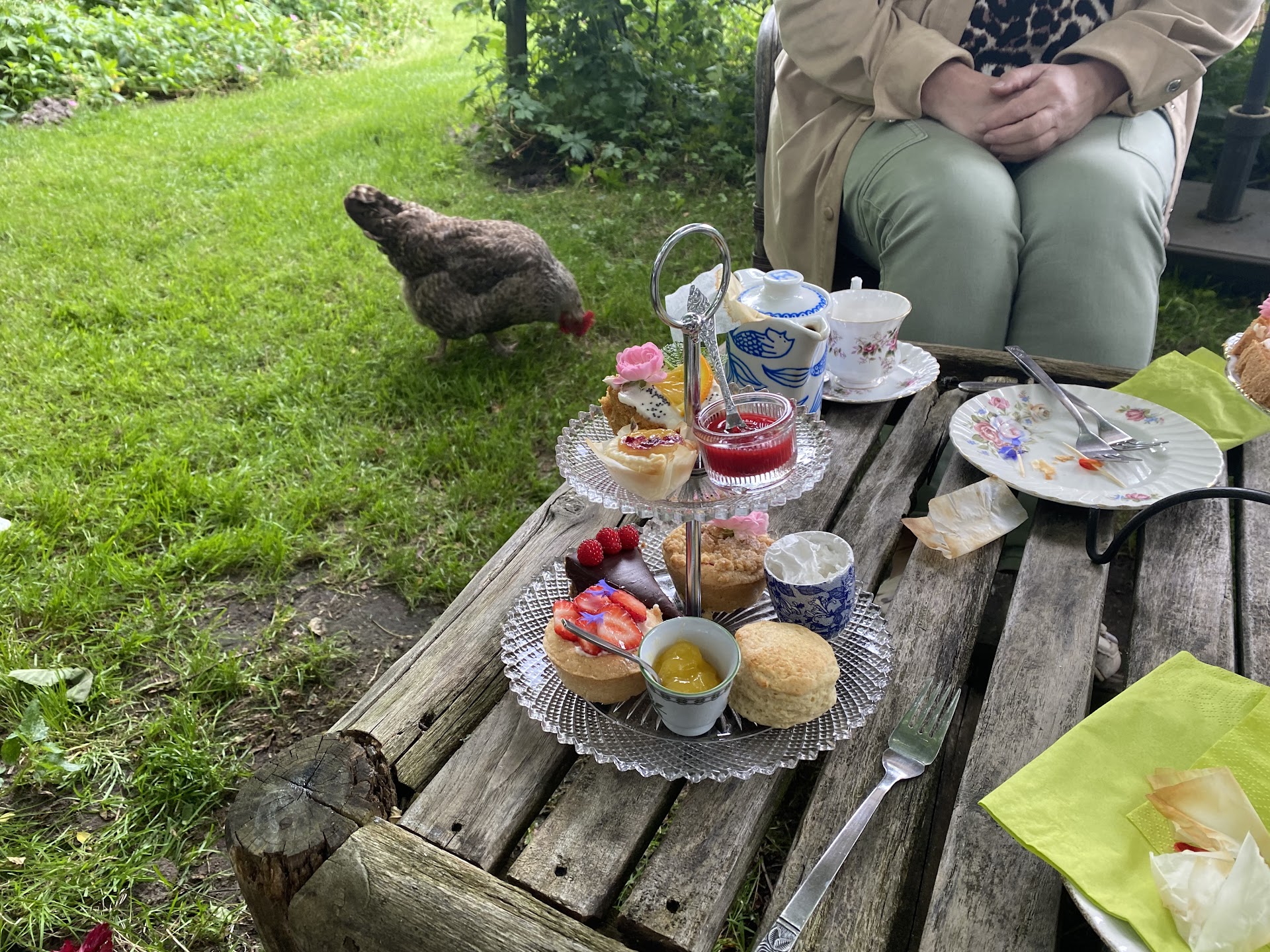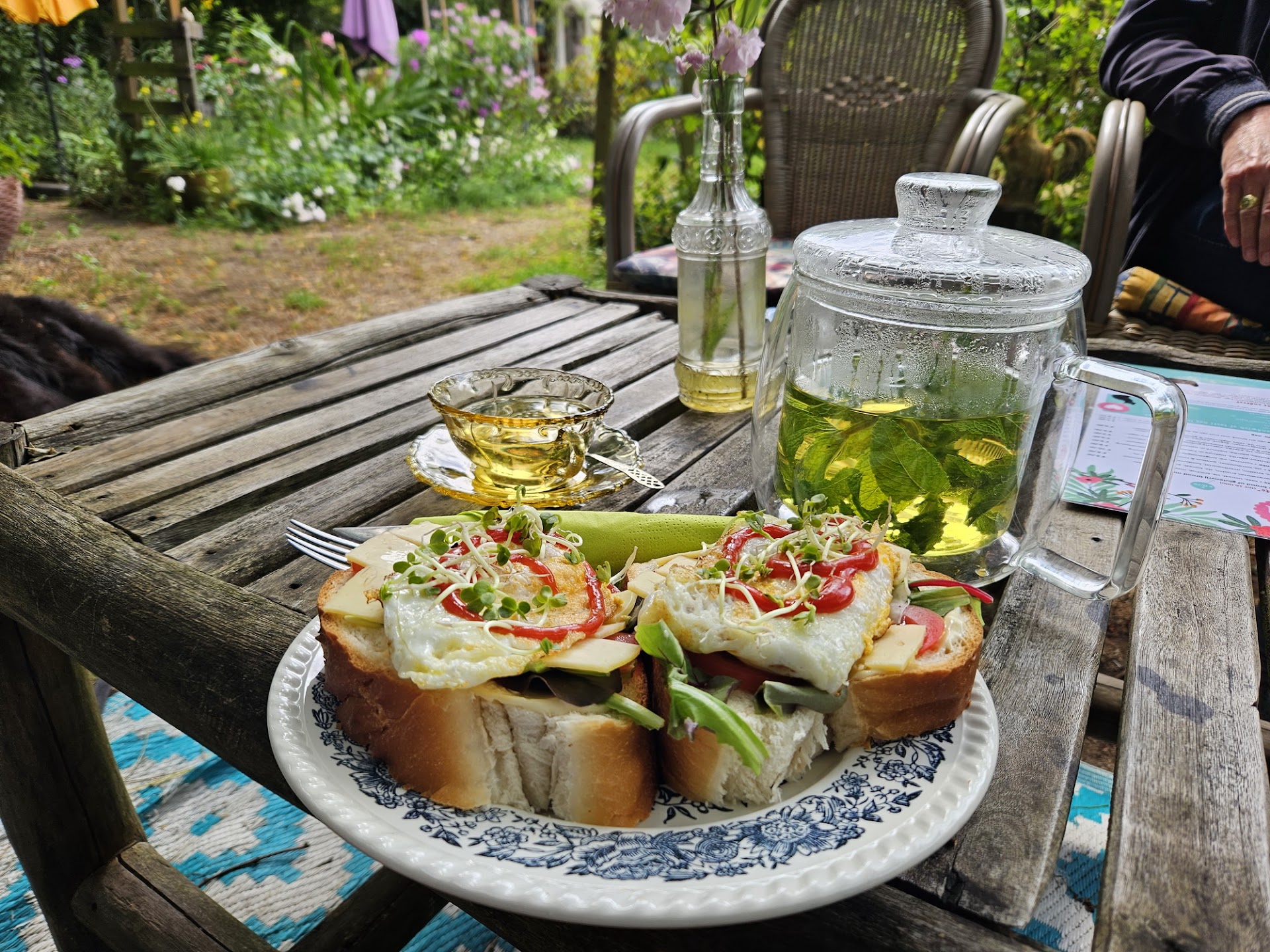 Prachtige tuin met supergezellige zitjes. Echter hebben wij 20 minuten gewacht voordat er een serveerster kwam om een bestelling op te nemen (en na ons kwamen mensen die achterin de tuin gingen zitten en nog langer moesten wachten en uiteindelijk zelf maar naar voren liepen om te gaan bestellen). We wilden rond kwart voor 3 een stuk huisgemaakte taart bestellen maar alles was op op iets met amandelspijs na en net amandelspijs lust ik echt niet :( Nog gevraagd of ze echt niks hadden omdat we daar speciaal voor kwamen. Nee ze hadden verder niks zoets. Best lullig als je dan 5 minuten later een heel dienblad vol met verschillende stukken taart voorbij ziet komen maar die hadden eerder besteld natuurlijk. Maar rond 15.15u komen er nieuwe gasten en horen we de serveerster een hele riedel taart aanbieden: chocolade en die met spijs en nog wat smaken. Huh? Ik vraag de serveerster hoe dit kan!? Ze zegt dat ze nog iets zijn gaan bakken rond kwart voor 3! Had dat dan gezegd! Wij hebben een half uur moeten wachten op een tosti maar hadden dan veel liever een half uur op de taart gewacht! Erg jammer. Het is een hele mooie plek maar qua professionaliteit mag het ietsjes beter wat...
