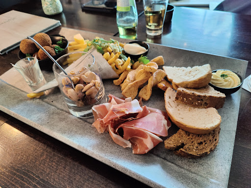 Read moreWe waren wat aan de vroege kant voor het diner want winkelen in Ouddorp kan tot 17:00 uur, daarna gaan de winkels dicht. Vanwege de dreigende luchten zochten we een terras met parasol en zo kwamen we uiteindelijk terecht bij deze Happerij. Moderne maar wat vreemde aanduiding. 't Schouwtje is niet het meest voordelige adres voor de zuinige toerist maar die kunnen dan ook beter naar een cafetaria of frieteria. Het eten dan: we begonnen met breekbrood geserveerd met kruidenboter en tapenade. Prima te eten, het betere breekbrood. Daarna beiden het luxe uitgevoerde broodje hamburger. Prima broodje, lekker vlees incl plakje spek en augurk. Daarnaast hadden we als extra de friet besteld; met truffelmayonaise en geraspte Parmezaanse kaas. Als cafetaria's dit ook durven gegaan serveren worden ze stinkend rijk (of gaan ze failliet want je moet er van houden). Afsluiting met 2 cappuccino. Redelijk van smaak ondanks de Laurentius bonen. Wel een vers koekje erbij. Opmerkelijk: 1 jongedame van de verder vriendelijke bediening sprak (alleen) Engels. En...