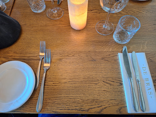 Het restaurant straalt op een rustieke wijze ambiance uit. De kok verdient een pluim. Medium was echt medium en doorbakken was doorbakken en toch mals. Eten werd goed geserveerd. Echter behoorlijk karig. Weinig vlees en we kregen (nadat dit eerst vergeten was) welgeteld 11 frietjes per man. Verder waren er veel vliegen wat makkelijk voorkomen kan worden door een hor. Ook de vloer was niet bepaald schoon (prikker van vorige eter lag nog op de vloer met een pepermuntpapiertje), zand, kruimels, rommel van bomem. De wijnglazen waren schoon, maar aangeslagen (blauwig met witte aanslag). De tafel was schoon maar voelde kleverig aan. Over coronapreventie nog maar te zwijgen. Mijn vrouw moest verzitten om ruimte te creëren en prompt werd een nieuwe klant achter haar geplaatst. Opmerking van andere resulteerde in scheve grappen en vooral desinteresse in juiste hygiëne (desgevraagd werd er wel desinfectie naar een tafel gebracht wat zeer netjes was). Ook keken we recht op de achterzijde waar personeel flink lol hadden in grappen en roken. De ambiance werd verder verstoord door personeel (eigenaresse?) die behoorlijk aan het stressen was. Praten over klanten boven gaf ook een onbestemd gevoel. Personeel zelf is heel vriendelijk. Eten is kwa kwaliteit heel goed. Wel te weinig. Menukaart heeft zeer weinig keuze. We hadden het 3-gangenmenu (36 euro, bestaand uit gepekeld kalfsvlees, hoofdgerecht diamanthaas en dessert naar keuze). We zijn geen grote eters, toch zaten we echt niet vol. Het dessert (bestaand uit citroentaart, sorbetijs en room) is een onsamenhangende keuze die bij ons beide niet lekker combineerden. Ondanks de goede kwaliteit van eten komen we hier alleen terug als er geen andere optie meer zou zijn. Er zit echt veel meer potentie in dit restaurant dan wat er nu uitgehaald wordt. We gaan het zeker wel nog eens proberen om te kijken of het toevallig een mindere dag was, maar voorlopig verkiezen we 20km rijden naar een beter alternatief boven nog eens hier eten. Ons advies: ambiance (meer eetcafesfeer) lekker hapje maar niet vol hoeven zitten: ga er heen. Ben je meer van ambiance in de zin van allure en een professioneel, hygiënisch gevoel, zoek...