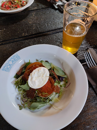 Lang wachten wordt vaak vorstelijk beloond. En dat is in dit geval zeker zo. JW Kramer, die ons hartelijk welkom heette, heeft met zijn team iets geweldigs neergezet. Eindelijk is het zo ver en heeft Brouwerij Solaes haar (tweede) vestiging geopend in Ouddorp. Het proeflokaal in Sommelsdijk blijft bestaan. De productie is verhuisd naar Ouddorp. Daar pronkt in de volledig gerestaureerde Chigorei fabriek een spiksplinternieuw brouwinstallatie. Daar is het niet bij gebleven. De brouwerij is uitgebreid met een brewpub met 17 tapkranen (één voor water), een open keuken en bijbehorend horeca/restaurant. Vanaf de eerste verdieping heb je een fantastisch overzicht over het geheel. Wij kwamen voor het 4-gangen verrassingsmenu met bijbehorend bier arrangement. Omdat het nog maar dag twee was werd er gevraagd om feedback (iets wat wij ongevraagd ook wel geven) en was elke tafel voorzien van een evaluatie formulier. Laten we hierin kort en duidelijk zijn. Er moeten nogal wat punten op de i gezet worden en links en rechts letterlijk nog wat schroefjes worden aangedraaid. Maar.. Dat neemt niet weg dat wij uitstekend gegeten heben. Pieter de Chef-kok kookt uitstekend op smaak in verrassende creaties. Hierin zien wij heel veel potentieel. Uiteraard hebben wij wat aanbevelingen maar die zijn toevertrouwd aan het formulier. Verrassende gerechten die prima aansloten bij de gekozen biertjes. Of andersom. Alleen bij het nagerecht hebben wij even een paar glazen andere smaak erbij gehaald. Want de gekozen Brandstof is een begrijpelijke keuze maar overstemt een beetje de boel. Terwijl een bescheiden Porter ondersteunend is. Maar de uitdagende aanvulling kwam van de fruitige Sour. Deze gaf nog eens een extra lift aan het nagerecht en zorgde voor een verfrissend einde. Al met al een zeer geslaagde avond waarbij de verwachtingen voor de toekomst erg groot zijn. Ik kan niet wachten tot het terras opgaat in de zonnige weekenden die gaan komen. Tip: twee buslijnen stoppen nagenoeg...