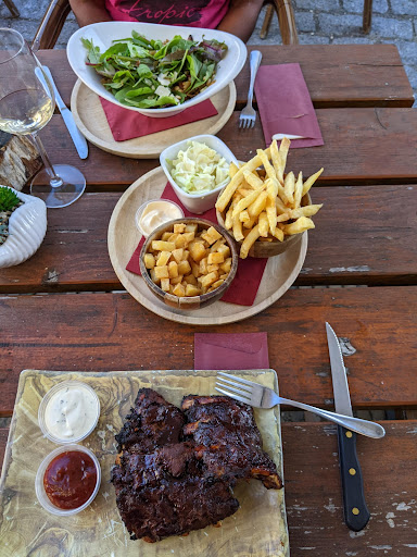 Het duurde heel lang voordat we wat te drinken kregen....duurde weer heel lang voordat het drinken kwam. Mijn man moest nog langer wachten op zijn biertje. We kregen 2 menu kaarten voor z'n vieren omdat die toevallig vrij kwamen bij onze buren .... Informatie over het eten bleek achteraf door de ober verkeerd te zijn verteld. Dus van de zalm werd daardoor niet veel gegeten. Mijn biefstuk was taai en ik kreeg geen steak mes erbij. De championnen en paprika die er bij zat was lekker. De spareribs waren echt lekker. De bediening was niet echt correct en er werd gezegd tegen mijn kleinzoon "dat ze niet komden vliegen" toen hij ging vragen of er iemand kwam omdat andere oudere gasten al heel lang zaten te wachte. Er werd steeds gezucht, net alsof alles te veel was....Er werden mosselen op tafel gezet die voor iemand anders was. Jammer eigenlijk, want wij zaten boven en dat is best gezellig om te zitten. Ik ben geboren en getogen op Flakkee, en kom regelmatig met familie en/of vrienden toeristje uithangen, maar ik zal niet snel meer bij jullie komen eten. De gerechten zagen er goed uit, werd op leuke borden geserveerd, het oog wil ook wat, en het brood met de smeerseltjes waren heerlijk. Toch jammer....leuke locatie, maar toch wel ongemotiveerd...