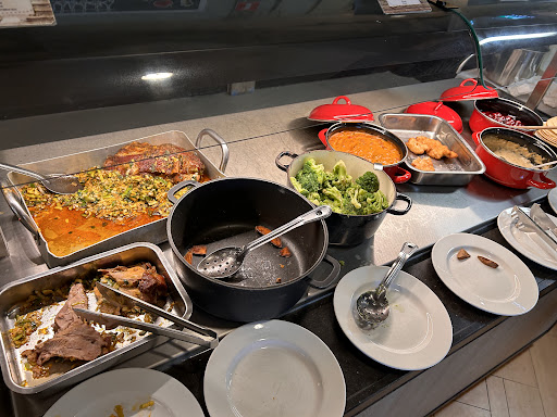 Read moreHeel lekker gegeten en vriendelijk personeel. Ik vond de curry kikkererwten schotel en bleekselderij salade echt geweldig. Het salade buffet is sowieso een aanrader, koude pasta salade, couscoussalade, huzaren en aardappelsalade, komkommers met dille enz. Alle denkbare smeersels voor bij brood en 2 verschillende soepen. Ik heb lekkere biefstuk op, kipsaté, zeebaarsfilet, zoete aardappelfriet, brocolli, zalm met groene asperges en pannekoek met warme kersen en slagroom. Wij vonden er ook dingen niet lekker uitzien zoals de "nasi goreng" en de frikandel/ viandel, maar dat soort dingen nemen wij dan gewoon niet. Als je genoeg lust, heb je meer dan zat keus. Ik ben nog nooit bij een All you can eat geweest waar ik alles pak óf alles er lekker uit vind zien - dat was hier niet anders. Dessert buffet was geweldig en ik heb wat taartjes (worteltaart aanrader!), chocomousse, veel watermeloen, softijsje met toppings en witte chocoladefontein met alle denkbare dipsticks op. Het personeel was vriendelijk. Al het drinken was inclusief - 6 frisdranken, koud water, geschaafd ijs, alle denkbare warme dranken en bier en wijn.