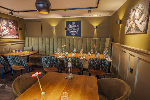 Bij binnenkomst kom je eerst in het café gedeelte, waar een aantal hoge tafels staan. De andere ruimte is het restaurantgedeelte, dat een sfeervolle ambiance heeft met veel natuurlijke tinten en een mosgroene wand versierd met sfeervolle zwart-wit foto's van vroeger. Deze details dragen bij aan een warme en nostalgische sfeer.