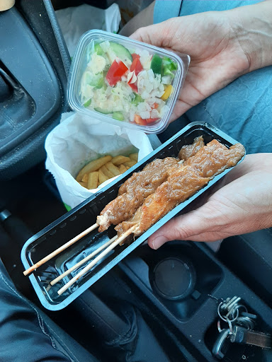 De salade is een heeeeeeeeel klein bakje en de sate zijn 3 kleine stokjes.
