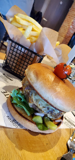 Read moreAlso es sieht zwar innen drinnen sehr schön aus und das Ambiente ist ebenfalls angenehm. Allerdings ist es als Vegetarier nicht sonderlich zu empfehlen, da es nur 3 Gerichte gibt, welche man als Vegetarier bestellen kann. Die Auswahl zwischen Burger, Salat und Kasekroketten ist jedoch recht dürftig, und sollte durch zum Beispiel Nudeln mit Pesto und frischen Tomaten, sowie Chilli-Cheese Fries, ergänzt werden, wodurch die Karte deutlich ansprechender für Vegetarier wird. Veganer würden davon ebenfalls profitieren weil sie dadurch neben dem Salat ein weiteres Gericht hätten (die Nudeln), welche sie ohne bedenken bestellen können. Alles in allem ein schon eingerichtet Restaurant/Cafe wenn man jedoch als Vegetarier/Veganer hierher geht, sollte man Lust auf Burger haben, da es sonst nur Salat oder 2...