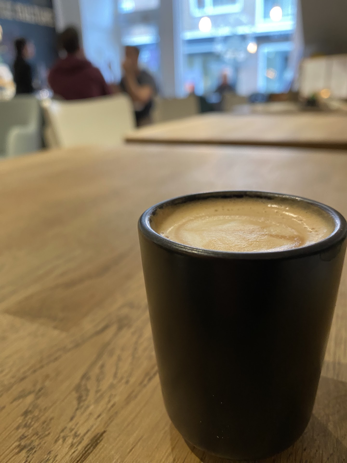 I was walking my dog with my girlfriend in the cold and damp atmosphere that the Netherlands offer. Wind was blowing hard on the city walls of Naarden Vesting. I was cold and wet and I wanted a place to warm up and have a coffee or a hot chocolatemilk. Then I saw coffe culture Naarden a warm and cozy place, smooth jazz and soul music turned out of the speakers and the staff was very kind and helpfull. After I made a small conversation with the staff I told them my name and I ended up with a hot chocolatemilk with whipped cream, on the cream marshmellows where placed in the form of the first letter of my name.