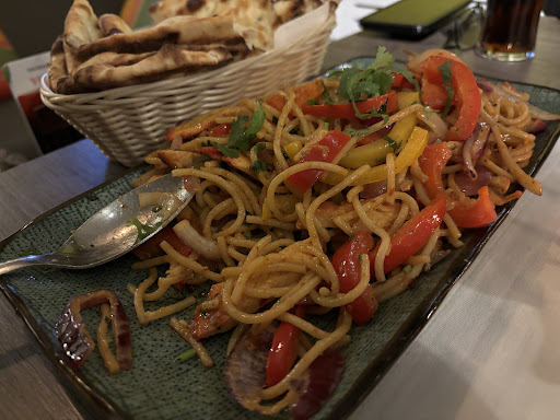 We had the vegetarian 3 course set menu, which was not a good choice. First: The pappadams were good, big ones folded in half. The raita was OK, the Chutney/pickle was OK, but there was a third strange yellow dip that tasted like mustard and was very spicy, probably had yellow Mme Jeanette chilis. The dhal soup was good. Next: The cauliflower pakoras were good, but no sauce. The samosa was OK, but no sauce and the pastry was very thick. I prefer my homemade ones. There were 4 rectangle blocks of Paneer cheese in a fried crust. Very filling and too much paneer. The veg curry was OK, but no vegetables, just gravy and more blocks of Paneer cheese. The other curry was almost identical, with more blocks of that cheese in a lighter sauce. The naans were OK. The pistachio kulfi was very nice, but we were so full after all that cheese, naan bread and creamy sauces.