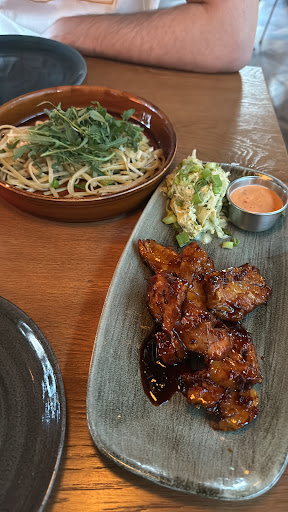 Dan de gerechten: ongelooflijk teleurstellend. De serveerster kwam aan tafel met de vraag die je niet wil horen en waarna je eigenlijk weg moet rennen. 'Ben je bekend met het concept' is natuurlijk de grootste red flag 🚩: 'kleine' gerechten waarvan je er minimaal 3 moet bestellen, a minimaal €15 per stuk. Bedenk wel dat de meeste gerechten een supplement hebben: zo komen veel gerechten op minimaal €18. Als dat je concept is moet je er wel voor zorgen dat de gerechten goed zijn. Dat waren ze niet: het burrata gerecht bestond bijvoorbeeld uit een halve (!) bol, een paar cherry tomaatjes en een kwakje pesto. De rolletjes met eend: twee kleine flensjes. We waren wel te spreken over de steak tartare, maar dat mag ook wel voor die prijs (€25). Eigeel of een broodje ontbrak, frietjes zitten er wel bij in.