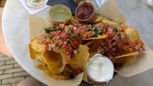 Ordered the apple pie and the nachos. The nachos were difficult to eat because the cheese really stuck to the chips but I have absolutely no complaints about the flavor. Not spicy at all which was to my liking and it came with guacamole, sour cream and salsa on the side along with some pico de gallo on top. There is outdoor seating at least in September and bathroom is accessible by a few stairs and is clean and pleasant. The servers were very nice and I wish I could have tried all the different kinds of cakes. They...