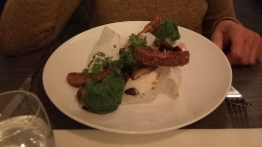 Read moreA nice restaurant, slightly to formal for my taste ( but that's personal, if you like formal, you'll like it here) the deer steak tartar I had as a first course was delicious and the salmon my mom had too. As a main course, my mom had the vegetables dish with crispy mushroom and coleflower, also a very nice dish. I ordered the lapwing (small bird). I have to say that I'm not a difficult eater, there is really nothing I don't eat, but the lapwing was such a disappointment that I gave some to my mom (who also didn't like it) and left the rest. The taste was weird, to much wild earthtones, the structure very spongy and nothing like a lapwing should taste. When I made a (kindly said) remark, I didn't get a response. Again, nice restaurant if you like formal, but don't order the lapwing if you...
