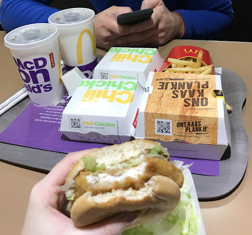 Het eten daarentegen verschilt heel erg per keer. Vaak is er wel iets dat niet helemaal lekker is aan de bestelling (bijvoorbeeld te zoute friet of taaie kipnuggets of een oude McKroket). Echter merk ik dit bij veel McDonald's vestigingen op. Toch komt het niet echt voor dat mijn hele bestelling niet te eten was, dus het eten kan zeker wel lekker zijn. Er is gewoon een gebrek aan consistentie in de geleverde kwaliteit. Wat wel veel voorkomt bij deze McDonald's is dat mijn bestelling vaak niet klopt. Ik heb al regelmatig meegemaakt dat er dingen ontbreken die ik wel besteld heb. Daarom controleer ik altijd mijn bestelling voor ik deze McDonald's verlaat. Als je er dan iets van zegt krijg je het uiteraard zonder problemen als nog mee, dus dat...