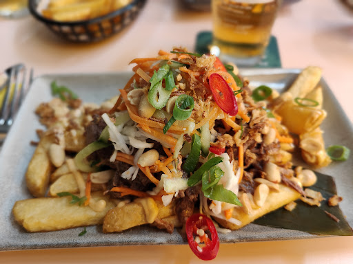 The vibe of the restaurant is really nice, and the concept is cool offering dishes ranging from Mexican to Thai and Japanese. Portions are on the smaller side, but we were warned about that before ordering.