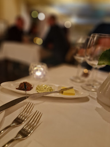 This delightful intimate restaurant is a perfect setting for a memorable night with your special companion or revered friends or a small family celebration. The decor is elegant yet homely. There is beautifully selected paintings hanging everywhere and artworks placed on the shelves. The cuisine is French and what a nice variety of dishes to choose from. To make our choice easier, we opted for the three course special, which was very good for just under 40 euros. There is a very nice wine list as well, and we were very happy to select their house wine. Water was free, which is a rarity in most restaurants today. We kicked off with an aperitif, which was a delicious pastry tart with a tot of soup. As a starter, I opted for the wild parade, which was a trio of wild meat bites. For mains, I settled for the wild boar medallions and deer steak with a delicious potato mash and red cabbage. Dessert was a cheese platter that was a fitting finale to a...