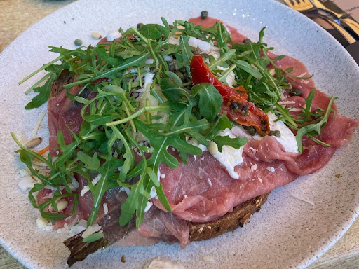 The carpaccio was served on sliced bread. My mum ordered the chicken sandwich, which was served on an Italian-style bread roll. She expected the chicken to be warm, but it was cold. Her sandwich also had grilled veggies, which were also cold.