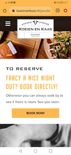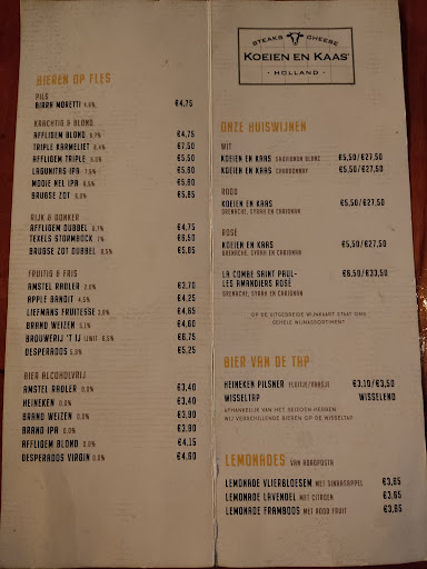 Although the restaurant is great and the food tastes amazing, it is a shame that they only serve 'mainstream' parts of the cow even though there is so much more to the rest of the animal: tail, head, neck, etc. It would be nice if 'Koeien en Kaas' would serve more of the 'koe' instead of only the main body. They surprisingly also do not have many options for cheese, other than tasting menus or fondue.