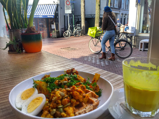 Read moreThis cafe was charming. I was there just after the lunch hour, so I had the place to myself for the most part. I sat at the bar at the window and it was lovely to watch the people and bicycles bustling by on the street. I had a combination of the sweet potato waffle and the special of the day (a cauliflower and chickpea curry) with a boiled egg. Simply divine! Also the Golden milk was well-made with honey on the side to add to your own taste. It’s a sweet place, the food is delicious, and the staff is delightful. They’ve got my...