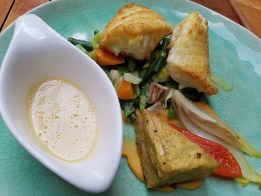 Read moreHet dichtsbij de Sint Janskerk, die we bezocht hebben en vervolgens trek en dorst kregen, lig het restaurant Bij Ons. Ook een kenmerkende naam dus zijn we er eens naar binnen gestapt. Bij Ons is een modern en sfeervol restaurant dat verdeeld is over twee verdiepingen. Bij binnenkomst op de begane grond is er een bar waar je een aperitiefje of ander drankje kan nuttigen. Achterin het restaurant is een prachtige trap die naar het restaurant op de eerste verdieping leidt. Hier kan je een verzorgde avond met overheerlijke gerechten en wijnen verwachten van gastheer Maurice Camfferman, chef-kok Stephen Hobbs en hun team. De smaken van de keuken zijn gebaseerd op de Franse keuken met invloeden van over de hele wereld. We hebben boven gegeten, het is er gezellig en sfeervol, en ook nog een leuk uitzicht op een smalle straat, wel bij het raam. De bediening is vriendelijk en behulpzaam, we konden op ons gemak met advies uit de kaart kiezen. We zijn begonnen met een broodplankje, doen we haast overal, soms verschillende namen, broodplankje, broodmandje, hier brood van Carl Siegert. Het is voldoende voor 2 personen, het gaat om een stukje brood met wat tapanade, kruidenboter e.d. Vervolgens hebben we de diamanthaas genomen, die kennen we ook goed, bijna net zo mals als een ossenhaas. Het was bijzonder lekker en netjes opgemaakt en voor een heel redelijke prijs. Als dessert hebben we Irish Coffee genomen, stond niet op de kaart, maar was er wel, kwam wellicht van beneden. Prima gegeten en gezellig gezeten en met drankje en tip voor...