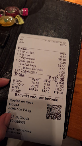 Although the restaurant is great and the food tastes amazing, it is a shame that they only serve 'mainstream' parts of the cow even though there is so much more to the rest of the animal: tail, head, neck, etc. It would be nice if 'Koeien en Kaas' would serve more of the 'koe' instead of only the main body. They surprisingly also do not have many options for cheese, other than tasting menus or fondue.