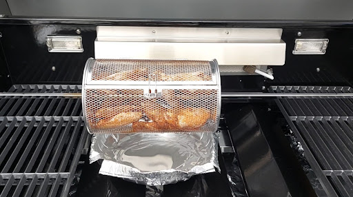 Rotisserie werkt perfect. Mandje passend gemaakt en de kippen vleugels zijn prima gelukt. Ik zeg goede koop.
