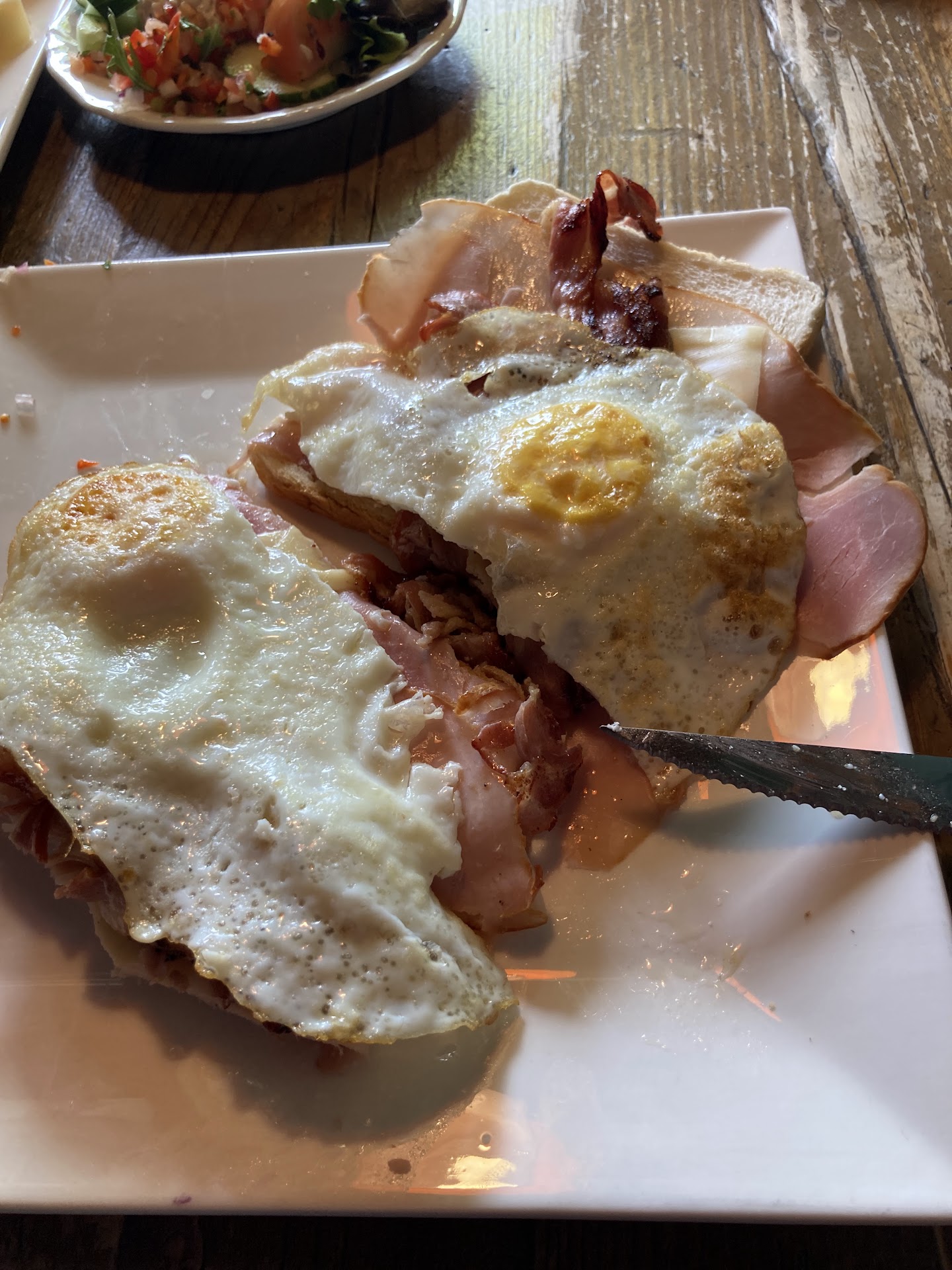 Read moreWat was dit een slapstick! Vreselijk! Leek wel een opname van bananasplit! Onbeschofte service! De menukaarten worden met bestek en al gewoon op tafel gekwakt. Eten van mijn man kwam eerst. Pas bijna een half uur later kwam de mijne. Vervolgens ztten ze eten op tafel die voor andere gasten was bedoelt. Geen excuses niks! De vegan en vegetarische opties zijn te verwaarlozen. Heb gekozen voor vegetarisch broodje hamburger met friet. Niet echt wat je zou bestellen in een restaurant maar er was geen fatsoenlijk alternatief voor vega. Krijg ik een gebakken hockeystick en een kwartier later krijg ik er een geroosterd sneetje brood bij. Geen friet. Mijn man had zalm. Was 1 plakje van slechte kwaliteit. Was ook nog eens hartstikke duur. Had beter naar de snackbar kunnen gaan. Er uiteindelijk op een rustige vriendelijke manier wat van gezegd, dat ik niet gewend ben om op deze manier bedient te worden. De jongen die voor ober door moest gaan was ongelooflijk onbeschoft! De baas moest het maar oplossen, die hoorde me aan. Maar bleef met zn armen over elkaar tegen de bar aan staan. Kreeg niet of nauwelijks respons. En later toen we de auto in gingen stond de ober dreigende gebaren naar ons te maken! BLIJF...