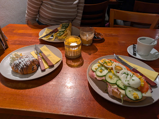 I don't know if there is more iconic french duo then a coffee and a croissant. We ordered coffee and pastry. So we got the coffee much earlier while sitting next to the pastry (we could almost reach them) I got my croissant after 15minutes with MUSTARD sauce on the side. When I told the waitress this is not how it's supposed to be served, the sweet pastry (croissant, pain au chocolat) should be served with coffee, she said I should've told so when ordering as it takes time to prepare. I thought it goes without saying as everywhere around the world waiters know this, and I don't think to throw a croissant/pain au chocolat on a plate, with some cream/garnish takes so much time but well... Pain au chocolat does not taste how it is supposed to taste and it is twice as expensive as it would be in France. If one tries to profit off the whole "French" vibe, at least do it authentically or as close as possible, but pain au chocolat is not the dough its supposed to be (it was dry and though, but maybe it was old) and croissant served with mustard sauce apart from coffee is at least to say...confusing. The sandwiches are okay but overpriced. The waitress we had was nice, but the service was very slow, despite having so many employes, it looked like they are stepping on each other's toes and not working effectively. Experience here can be described as everlasting waiting, waiting for initial notice, waiting for pastry, waiting to pay the bill while standing in front of 5+ employees... It is a nice overpriced sandwich place for the Dutch, but nothing to do with France at all. Why call yourself a...