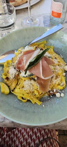 Amazing! Whoever made the executive decision to hire the ✨Extremely Charming✨ Italian young man just ensured this restaurant's 5 star review. The restaurant is easily accessible, located right in the city centre, in a beautiful Art Nouveau tenement. The decor is rather unique, giving Italian grandma's storage, but together with the music and the enthusiastic service it creates a fun, homely atmosphere. We were also sitting right by the entrance so perhaps it's more quiet at other tables. The food was great, we ordered pasta Al Salmone (Mr Charming's favourite) and Carbonara Originale. The pasta was creamy and flavourful, although I'd say mine could use some lemon to pair well with the fish. My dad is a carbonara connoisseur, he tries it everywhere we go and he really liked this one. They also let you choose the pasta shape! (they don't have alla chitarra in case you were wondering). The prices are also really affordable compared to other Italian restaurants. Overall, a great choice. I went in knowing nothing about Groningen's Italian scene, chose the restaurant based on convenience and carbonara availability, ended up having a really good time and a fun experience in general. 100% Would...