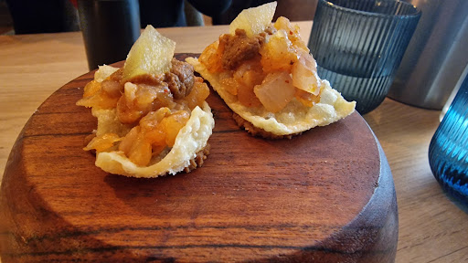 Read moreI was nervous and very curious to taste their suprise dishes, as there is no specific menu, actually no menu at all... So as soon as I arrived at the restaurant, I was very well attended and everyone was really friendly. They were always explaining in detail what was in the dish showing not only the love for the dishes they are serving, but also that they take care of their customers. Just to raise curiosity, For us they served us a delicious starter that included a shot which included specifically cheese, chorizo,... And well, extremely tasty, very good, moreover, we also got a mini taco, and I was once again suprised of how tasty it was and even how different it was from what I tasted until now. I will only tell you the started and not all the other dishes, to keep it a surprise 😉 To add to my review, the team of the restaurant always listened with full attention of what we asked for, as in this case I was there with my girlfriend and we have different tastes for drinks especially. To conclude, unique and awesome taste, very good food, good drinks and good service. I recomend everyone that is visiting Groningen, to go to this restaurant. To the team, keep up the good work! I am giving 5 starts because it is the max, otherwise I would give...