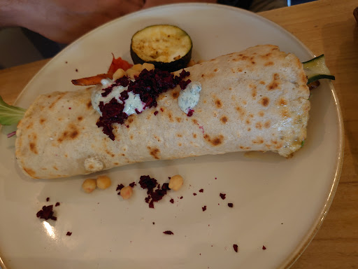 In our weekend visit to Groningen we tried the herbivoor as it is right in the centre and had plenty of space while many other cafes were very full. Wooden interior, no special design, but friendly and welcoming. The menu changes and van be found on the chalkboard. Their food and drinks are organic and vegan. I had the grilled vegetables with tahin sauce. Good choice. All very fresh and more than sufficient. My partner had the wrap, which was quite big and full of vegetables. Served with a salad. Beers are all Gulpener, which is a right choice. Price on the higher end, but logical for such a good...