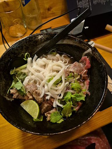 Menu kregen we best snel en drinken kregen ook wel vlug maar daarna begon het wachten en de chaos. Ik bestelde de Pho Bo (ramen met biefstuk). Vriendin had gyoza en Tonkatsu ramen. Na het bestellen kwam er een serveerster vragen of wij de menukaart al hebben gehad. We waren beetje in de war want wij hadden al besteld.