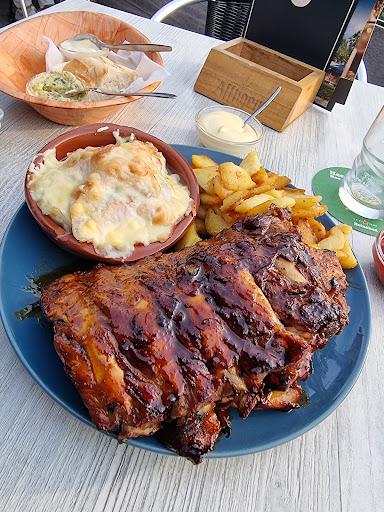Read moreBroodje vooraf was met heerlijke eigengemaakte kruidenboter. We hadden de schotel met lever, spek en ui en de varkenshaas sate schotel. Beide echt een bord vol en overheerlijk. De salades bij de varkenshaas waren uitmuntend! Bediening was zeer vriendelijk, soms wat vergeetachtig maar dat werd steeds snel opgelost. Helaas viel het ijs enorm tegen. Voor 5,75 een koekschelp met een klein beetje softijs, wel veel witte chocolade erop maar een minuscuul klein beetje frambozensaus dat ik echt niet naar frambozen vond smaken, vond ik veel te duur. De serveerster kwam nog heel attent met 2 bakjes om te proeven: 1 aardbei en 1 frambozen saus. Mijn partner had voor 2.75 een bakje met evenveel ijs. Dus dat wordt het de volgende keer: Bakje ijs met een topping! Verder niets dan lof. Prima...