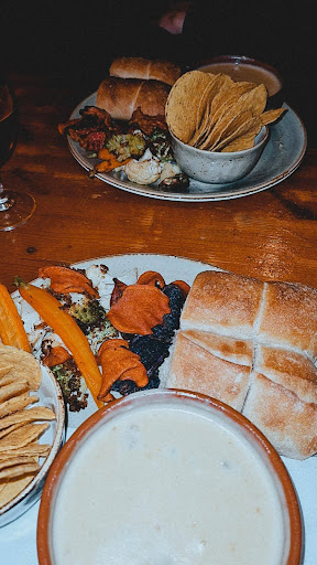 Het Pakhuis - a hidden gem. It’s evening. I don’t have any food at home and I am just walking around Groningen city centre looking for something nice. Doner kebab has become boring, and other places look overcrowded – not what I am looking for. I stumble upon an alley which some time ago looked dark and sketchy but now is covered by warm, bright (maybe a little too bright) lights and I see a signboard – Het Pakhuis. My gut made a choice for me and I climbed the stairs to the restaurant floor. Everybody knows that the 1st impression after walking through the door determines the whole dining experience. The 1st thing noticed was the building itself, which does not look like a lot from the outside, but reveals its history on the inside. I’ve been told by the staff greeting me with heartwarming faces, the building was a spices warehouse. You can still see it from industrial looking supporting columns. Although now all the spices are in the kitchen and on the plates and the restaurant is filled with wooden shiny tables, romantic candle lights and fine dining dreamy music. After sitting down at a table I am offered a selection of eight wines, five tap beers and an wide selection of canned and bottled ones, which at first seems overwhelming. It’s a good thing that the waitress can help me choose quickly, reading my taste from a few sentences and offering me something I didn’t even know I wanted. The "Liquid Staycation" did what it had to and made me stay to try the food. Pakhuis offers various appetizers such as broodplank with constantly changing dips, bitterballen etc. My choice was arancinis, made by hand. Believe me when I tell you, I could taste the love in every bite. They were followed by a daghap vlees of a Goulash with deer meat, a salad and some fries. Vegetarians and vegans are welcome here, with separate daghap options. The food was delicious. I had to finish the sauce on the brim of the plate with some bread I had left. Another thing I need to point out is the philosophy of sharing here. It is a perfect choice for dates, as if you are sitting with your crush at a table you get one bowl of salad and fries together with separate mains, which at 1st seemed a little unorthodox for restaurants, but makes the interactive experience inevitable. I could not think of another better ice-breaker and a way to feel connected to the person on the other side of the table myself. By the way, if you believe in olive theory this is the best place to test it! Apart from daghaps which are changed almost daily, Pakhuis also offers their classics – juicy glazed spare ribs, or a cheese fondue to pamper your palette. The chefs are aware of the creativity/conservativity trade-off – do not break what already works best, but leave space for creativity and surprise. (Oh and did I mention that products get to Pakhuis from local Groningen suppliers and growers?) This applies to the desserts, which are changed almost daily. Once again, vegans also will find something for themselves in the sweet realm after a filling dinner. Enough about the food, let’s get back to the atmosphere. I was surprised about how calm the staff looked even when it got a little busier. They are interactive, communicative, and welcoming people, being able to throw a joke at each other while carrying four plates at a time, which seems magically effortless. Their smiles seem genuine and their connection reminds me more of a family than a simple restaurant staff. As one waitress told me “Here at Pakhuis we are a family, connected not by blood, rather by the opportunity to share the warmth we have with every guest coming in”. I am not natively Dutch myself, thus I struggled to understand the exact meaning of the word “gezellig”. In order to understand it you have to experience it and Het Pakhuis is a place to do it. I love what this restaurant has to offer – a safe and cozy place right in the centre of Groningen where most places seem chaotic and commercialised. And if you also do not have anything in your fridge and it sucks thuis, come to Pakhuis. You...