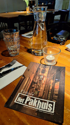 Op een maandagavond ging ik met twee vrienden van mij uiteten. Hiervoor hadden wij een plek gereserveerd bij Het Pakhuis in Groningen. Om vijf uur in de middag konden we hier naar binnen, dus hadden we toen afgesproken voor het restaurant. Daarna liepen we naar binnen en gelijk al bij binnenkomst werden we vriendelijk ontvangen. De sfeer tussen ons was leuk en gezellig. Vanbuiten zag het restaurant er een beetje vaag uit, erg weggestopt en onbereikbaar. Maar vanbinnen gaf het een supergezellige straling af. Het personeel vroeg waar we wouden zitten en mochten vervolgens onze eigen plek uitzoeken. We werden direct bediend door een superaardige serveerster. Ze bood aan of we al wat te drinken wilden. Echt een topservice!