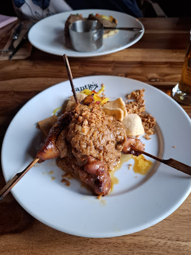 Toch zijn er enkele punten die in mijn beleving aandacht verdienen. De friet en de crispy chicken burger waren aan de zoute kant. De burger was bovendien te hard gebakken (meer droog dan crispy). De diamanthaas werd lauw geserveerd, had wat meer op smaak gekund en oogde wat aan de droge kant, ondanks dat hij rosé gebakken was. Mijn saté van kippedijfilet was prima van idee, maar ook hier was de garing aan de droge kant. De saus was verder prima, maar wat dik en had weinig diepgang in smaak.