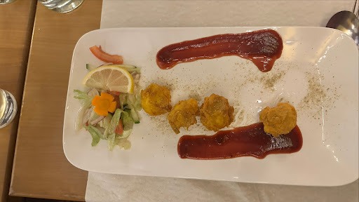 Read moreNo customers all night except for us 2. Started with a mango lassi, this I'm certain was a sweetened turmeric lassi passed off as mango. Ordered a non veg thali (for minimum 2 persons) with some samosas. Samosas OK, thali had 2 or 3 chicken dishes, the butter chicken was chicken in custard? The other 2 were chicken dishes were almost identical. A fish dish made with muddy tasting freshwater fish, a mushroom dish, salad and raita, oh and rice. My friend said the rice was the best bit. This came to the grand price of €80, no coriander, roti or chapati on the menu which had a pretty poor selection. All in all very very disappointing meal, the kebab shop would have been a 100%...