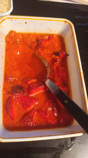 Let's start with the sauces, they were runny and oily. Just from seeing them, we could tell we were in for a bad time. They were unnaturally bright as you can see in the pictures, with a distinctly oily shine. Both sauces featured raisins quite prominently despite not being advertised on the menu in Thuisbezorgd.