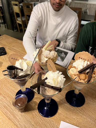 Read moreWij zijn hier op info van andere mensen een keer naartoe gegaan. Dus op een zeer zonnige zaterdag naar Pauls ijscafe toegegaan. Kom je daar aan is de gehele parkeerplaats vol. Oké, kan een goed teken zijn. Wij het terras op gelopen. Uitzicht vanaf her terras dus op al die geparkeerde auto's. Dus niet echt gezellig. Wij naar binnen. Een en al verschillende ruimtes in dit grote gebouw. Wij nemen plaats in een van de ruimtes. Toen begon het wachten. Kleine 20 minuten, toen ben ik opgestaan om bediening aan te spreken. Geef netjes aan of we iets kunnen bestellen. En geef ook aan waar we zitten. Uiteindelijk komt de bediening om bestelling op te nemen. Geven aan dat we ijscoupes willen bestellen. Komt gelijk het commentaar dat dit gezien de drukte op het terras wel een kleine 20 minuten kan gaan duren. Geven aan dat dut geen probleem is, bestellen in de tussentijd 2 cappuccino's. Deze worden ook vrij vlot geserveerd. Je ziet en merkt aan alles dat er niet voldoende bediening aanwezig is. En daar komen zowaar de beide ijscoupes. Hadden 1 ijscoupe yoghurt ijs met frambozen en 1 ijscoupe yoghurt ijs met frambozen besteld. Smaakte goed met slagroom en vers fruit. Hier niets anders dan een goed product. Maar terugkomend op de bediening in het algemeen. Dit is echt ondermaats. Een onsamenhangende geheel. 1 dame voor de bediening en opnemen van de wensen van de mensen. Maar juist met zo'n zonnige zaterdag moet je daar als leiding juist op inspelen dat je voldoende mensen in de bediening hebt staan. Dat is vooruit kijken en plannen. Prijs / kwaliteitsverhouding is ook niet in balans. Euro 8,= voor een simpele ijscoupe. Is echt buiten proporties . Helaas een gemiste kans. Wij gaan hier niet meer naartoe. Zijn betere en klantvriendelijkere ijszaken in het mooie Heuvellandschap...