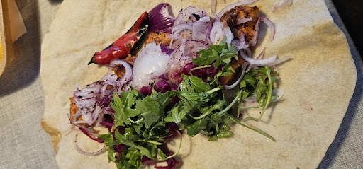 We ordered Tavuk Şiş (Grilled Chicken), Rice, Fries and Çaçık (Yoghurt with Cucumber). And we loved it. It was very fresh, well seasoned, everything was very finely chopped and you could really see that it was made with love. And nit only because it was packaged so neatly. The vegetable garnish was very basic (just onion, arugula and cabbage), but it was perfect. It comes with a wrap, which means you can put anything in it, wrap it up and bite into it. With the Çaçık sauce, it was the perfect chicken yufka.