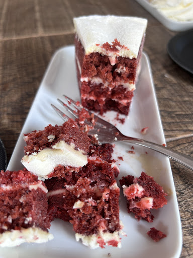 Read moreLike some other reviews customer service is subpar. I stood at the counter for about 2-3 minutes before asking them if I could order and then another few minutes before they were ready to take my order. The food didn’t take too long to arrive though but when my red velvet cake came it was the most disgusting cake I’ve ever tasted! I think it had been sitting there for more than 3 weeks. It was sooo dry that it started to turn white as you can see in the pictures. I contemplated about taking it back but my friend had a lemon tart which didn’t taste that great either, so I thought even if I exchanged it for something else all their other cakes would taste just as bad. My friend did say when she went before the hot chocolate spoons were good but I ordered coffee so can’t comment on that. Definitely don’t order any...