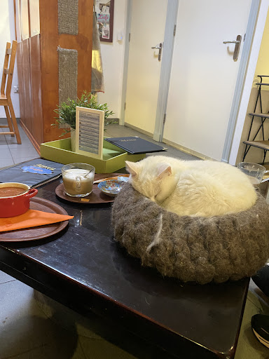 Heel erg leuk! Very nice cat cafe, the owners and staff are friendly and approachable. Contrary to a lot of other cat cafes (I've been to a few in different countries now), the food and drink here is actually good!! They have a diverse menu with both savoury sandwiches and cakes, so if you need a proper lunch you can come here too. Of course they also have apple cake (appeltaart!).