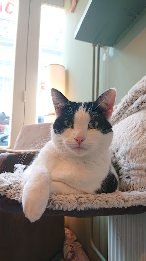 Read moreWe love coming here; we visit every year on our way home to England. They do nice food (much better than any cat cafe in England we have found) with home made soup, plenty of vegan and vegetarian options and lovely cakes! The apple pie was particularly good 😀Of course, the best bit is the cats! It is a lovely home for them, their wellbeing is obviously paramount and they have loads of high perches and walkways (as well as a “withdrawing room” 🤣) for when they are feeling less sociable. You book online, and have 90mins for your slot, which keeps the numbers down for the cats’ comfort but also lets other people enjoy it. The staff are universally lovely, chatty and helpful, and know everything about what each cat likes and dislikes. (Thanks of course for speaking English to us hopeless Brits!) Oh, and as a last minute present stop (maybe for the neighbour who has been looking after your cats?) it is great, with all sorts of cat themed gifts. A lovely place for a stop before the ferry home to Newcastle. See...