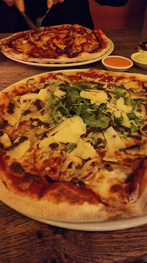 Hier afgelopen donderdag weer sinds lange tijd gegeten. We konden reserveren, dat was wel top. Vroeger kon dat alleen voor grote gezelschappen. We verheugden ons om weer eens hier te eten, want het zijn altijd lekkere en bijzondere pizza's. Bij binnenkomst werden we begroet door een dame en naar de tafel begeleid. We namen plaats en mevrouw was weg. Niet vertellen mijn collega komt zo bij u, of kan ik alvast was drinken voor u inschenken. Het heeft ruim een half uur geduurd voor er iemand aan onze tafel kwam. We hebben meermaals geprobeert aandacht te trekken van het personeel, maar de blikken van de bediening stond op oneindig. Wij hebben echt tegen elkaar gezegd: We geven ze nog 10 minuten en dan vertrekken we en gaan we ergens anders eten. Er stonden nog 2 minuten op de klok toen er iemand kwam, nadat ik eindelijk oogcontact had kunnen maken. Saved by the Bell. Dit was een vriendelijk meisje hoor. Onze bestelling maar meteen helemaal doorgegeven, drinken, voor- en hoofdgerecht. Nagerecht wisten we nog niet. Het drinken en voorgerecht kwamen redelijk snel. De nacho's hadden wat weinig kaas en te weinig crème fraiche, maar waren wel lekker. Voor de chilisaus moesten we apart betalen. 95 cent voor een klein bakje, waarvan wij zoiets hebben, dat gewoon standaard bij nacho's hoort. Inmiddels waren onze drankjes alweer op. Wederom niemand die even kwam om een nieuwe bestelling op te nemen. Het duurde ook best wel even voor ons voorgerecht bord werd weggehaald. Ook toen niet de vraag of we nog iets wilde drinken en of alles naar wens was. De bediening was al weg voordat we ons mond konden open doen. Toen ons hoofdgerecht kwam, hebben we zelf moeten vragen of we alstjeblieft nog wat te drinken konden bestellen. De pizza's waren lekker, en heet. Beleg had wel wat meer mogen zijn. De randen zonder beleg waren vrij breed. De rucola mogen ze er af laten wat ons betreft. Ze gooien dit op echt elke pizza, en niet een klein beetje ook. Tevens staat rucola niet op de kaart vermeld. Snap dat het ter decoratie is, maar totaal niet nodig en verspilling van voedsel. Na onze pizza's hebben de borden nog geruime tijd gestaan, met wederom lege glazen. Toen er werd afgeruimd werd er gevraagd of we nog een dessert wensten. Deze besteld. De cheesecake was echt goddelijk en de avocato was ook lekker. Toen deze werden afgeruimd werd er wel gevraagd of het had gesmaakt, maar niet of wij nog iets wensten als koffie of thee. Weg was de dame. Uiteindelijk zelf maar opgestaan en afgerekend.