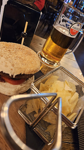 Read moreAn expensive bar with pleasant staff and located just in the corner of the covered Schipol airport terminal, near the train station. The bar has an outside seating area too. Beers are expensive at 9euro a pint. The food I had was very poor. I ordered a burger, which came with only crisps (chips) and no fries. On my first bite, the overly fatty burger shot hot fat through the bun and onto my hands! The meat patty was far to fatty for my liking, I wouldn't expect that much liquid fat in a burger. Overall, a disappointing experience. Whilst the bar may be good, look elsewhere for food. (Burger King is nearby, has cheaper meals that also include chips...