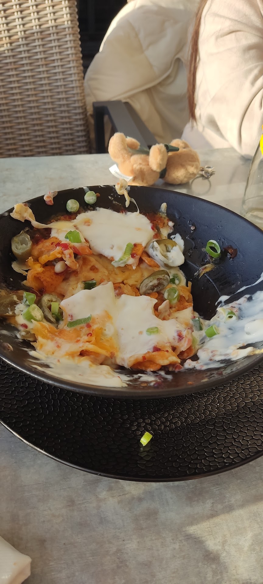 The "Nachos" was a soggy mess, drenched with sweet chili saus and sour cream. And it seemed like they used cheese flavored Doritos instead of real nachos. We gave up, just too sweet, messy and soggy. Fries and bitterballen was acceptable although a bit undercooked.